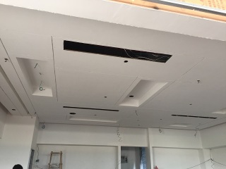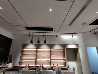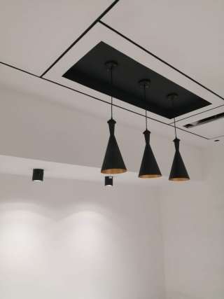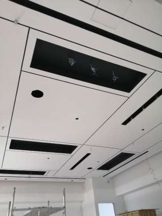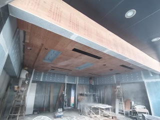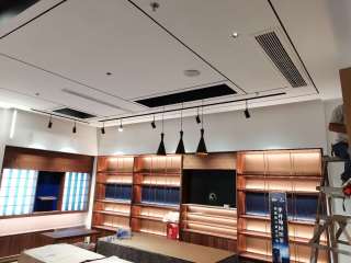 主要施工项目包括:1,消防改造;2,二楼挑空层倒板;3,墙地砖铺贴;4,顶面吊顶造形等等
