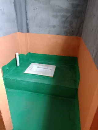 一楼卫生间刷防水涂料,正在做闭水实验。