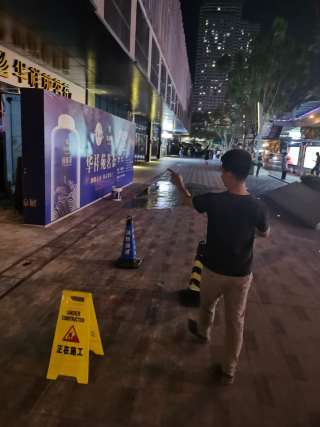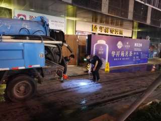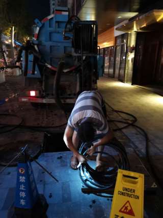 突发情况! 原来开发商留下来的,下水管堵塞啦。导致卫生间排水不畅。为不耽误店铺,正常开张。施工队连夜协调,市政人员过来处理。