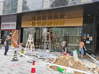 招牌安装完工。基础装修部分(拆除、水电、泥水、木作、涂料)都已完工。招牌安装完,围挡施工可以拆除了。