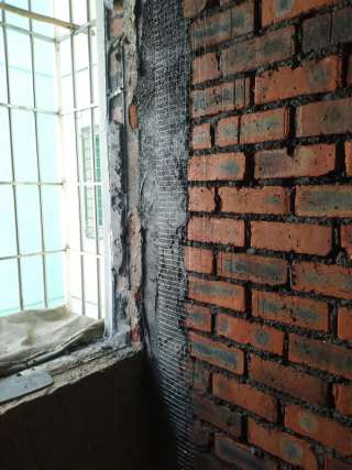 新旧墙体平面交接处,布置20公分钢丝网