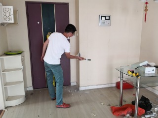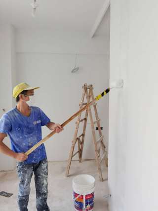 涂料施工中。因业主家,有小孩。特意配上立邦小王子儿童漆。