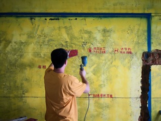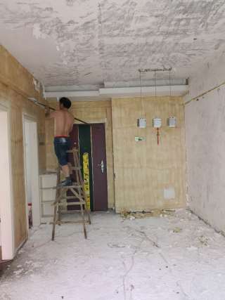 拆除完,墙面、顶面铲白灰致水泥砂浆层。