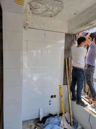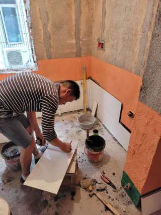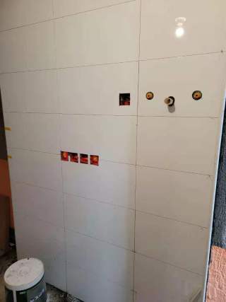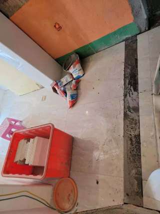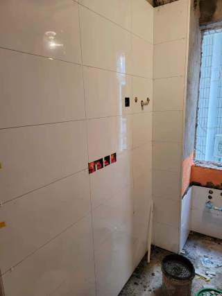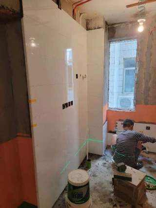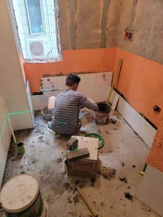 上周防水验收完成,这周开始安排,泥水师傅进场贴砖。