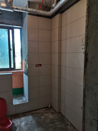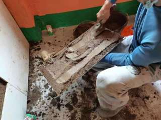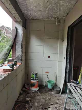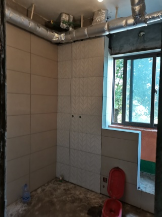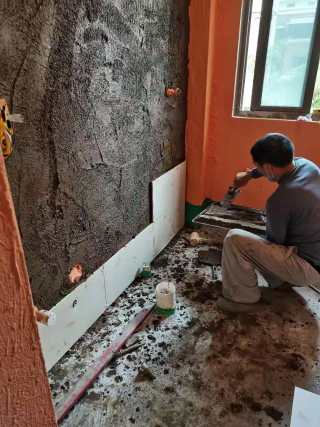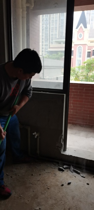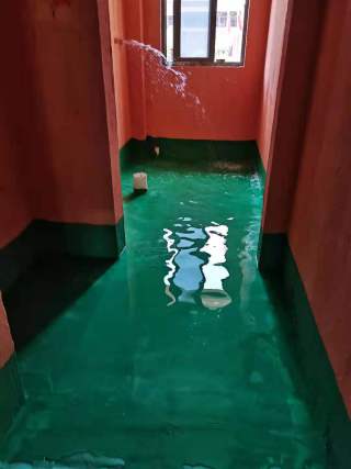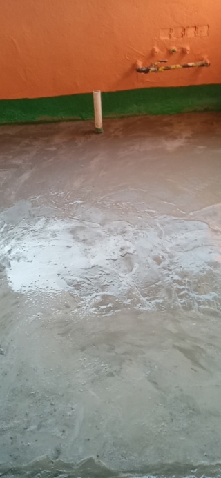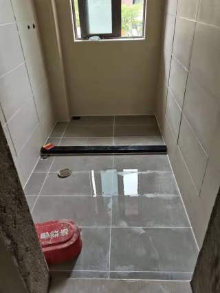 前后天约好,楼下业主看防水是否漏水,确定无漏水后。 今天安排师傅,过来对防水层,用泥水再找平一下,做好保护防止泥水师傅,贴砖时候不小心,把防水层破坏了。