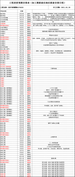 施工进度表,我们针对每户人家,都指定详细的施工进度表。严格把控工期。