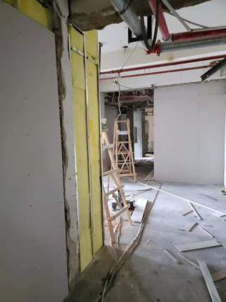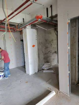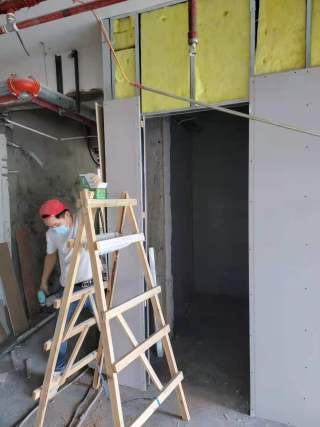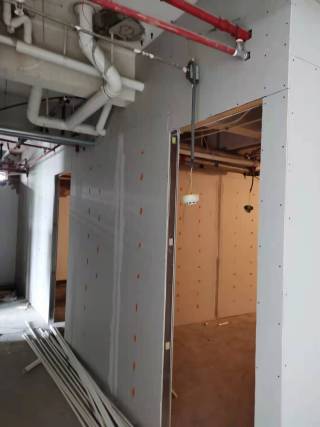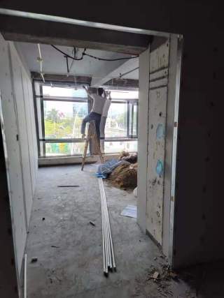 2,二楼石膏板墙进场及新砌墙;