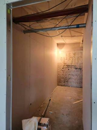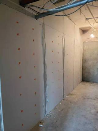 木作石膏板隔墙,已经完工。目前对螺丝钉,进行防锈处理。