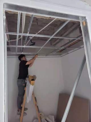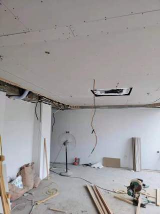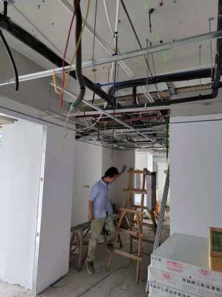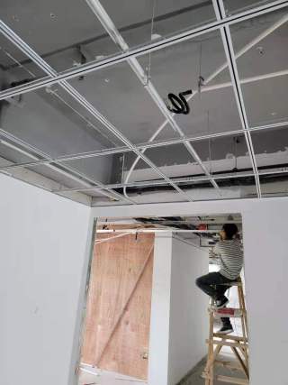 赶工期,赶工期,吊顶施工现场。