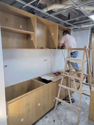 商会装修项目工作今天搞卫生,明天都可以按排网络按装,控调试,音响,监控,软装,字画,绿色植物,办公家具,办公用品,电脑,打印复印一体机,进场,26号之前场所所有的布置工作完成。