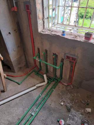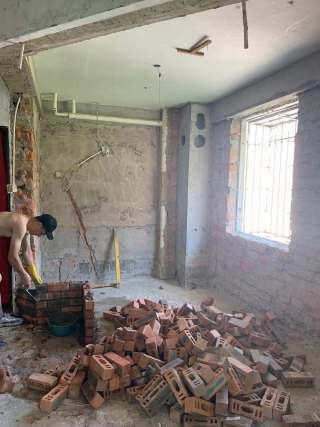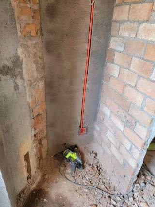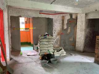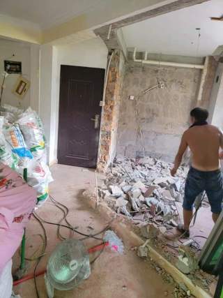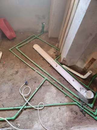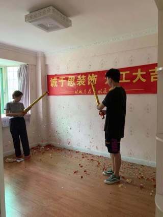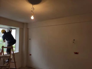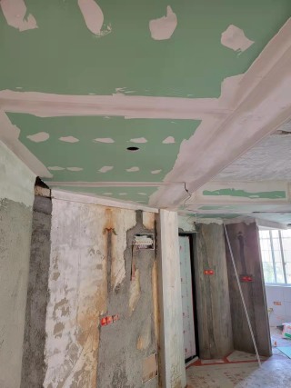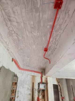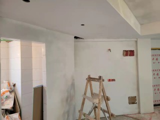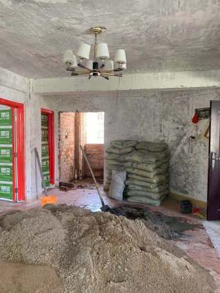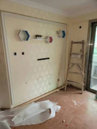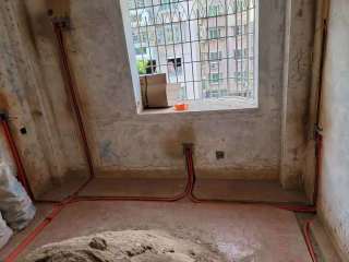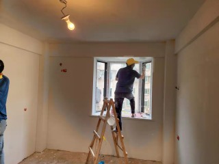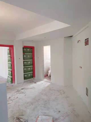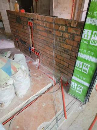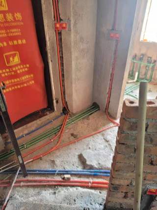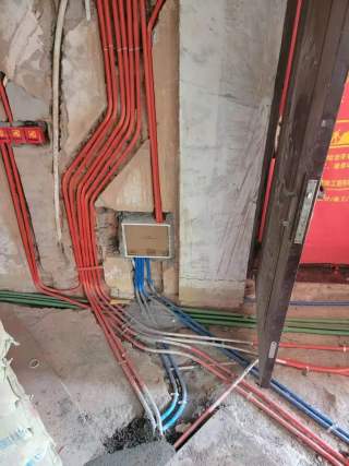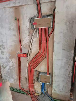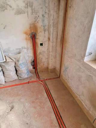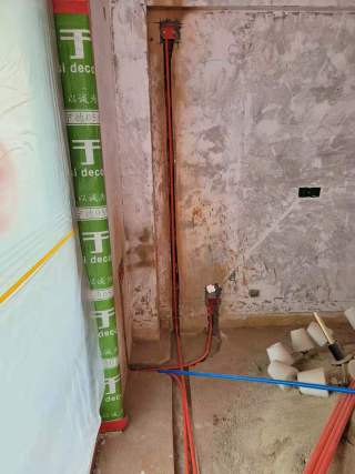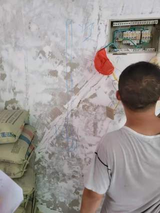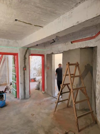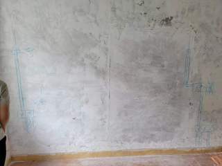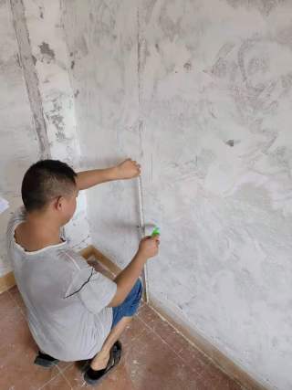 水电放样现场。在这里提醒一下业主,水电放样这步非常关键。是开关、插座、灯具等由图纸到实际现场的体现。请务必重视,如有改动部分,可以直接现场提出。