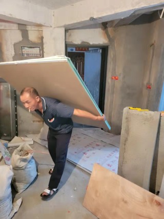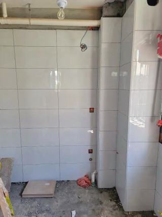 18号疫情结束后,开始进行大面积的瓷砖铺设。